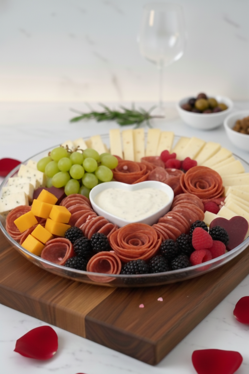 Make this Valentine’s Day unforgettable with a gift that speaks the language of love. This exquisite platter features our handcrafted salami roses, premium cheeses, and a burst of fresh, vibrant berries. Wrapped in crystal-clear professional packaging and finished with a delicate red bow and our signature Sweet Bloom logo, it is the ultimate gourmet gift for your special someone. Elegant, delicious, and ready to impress.