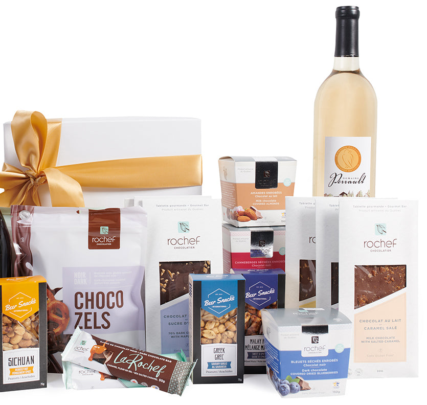 When you need a spur of the moment gift - this just might be the one!  This gift basket comes with a bottle of prestige, Domaine Perrault Zanibel (white) wine or Rosalie (red) wine and comes complete with some gourmet chocolate from Rochef Chocolatier. Whoever receives your spontaneous gift will taste the difference that local Ottawa vintners and chocolatiers make. They will definitely love and remember this gift for some time to come!