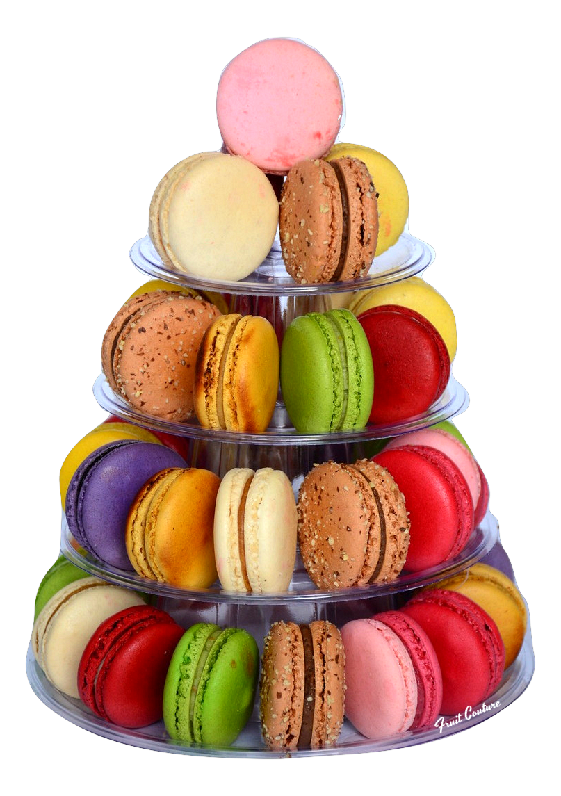 This beautiful tower of macarons are sure to be a hit at your next party! Gift this to your guests or one special person in your life with an assortment of flavors! The flavors vary by day, however, you can expect to have more than 6 different kinds in each tower. This gift includes 39 macarons/tower.