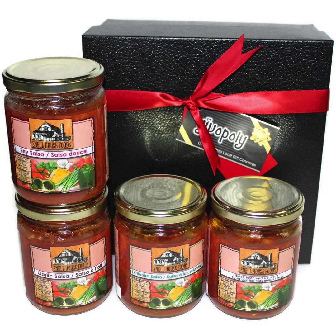 A great gift for a Foodie who loves to savour flavour!  Throwing a party?  These will create four different tasting stations that will get the crowd talking. Snell House Foods Salsas have a bold, if not unique, certainly definitive character.  Prepared by hand and never over processed, their salsas contain chunks of tomatoes and lots of chopped vegetables. These salsas are all unsweetened and gluten free with no MSG.